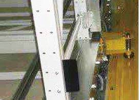- レール架設工事の際、床の切欠により強度が弱まる恐れがありますが、レールレスの場合は心配ありません。幅広車輪のうえ、数も自由に設定できるため、床の耐荷重に合わせて設計することができます。最大耐荷重は一間口6トン・1連12トンまで可能です。
